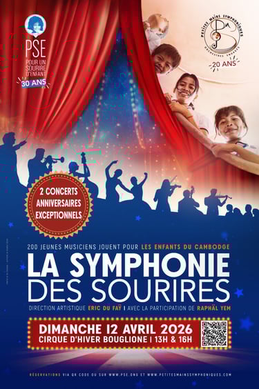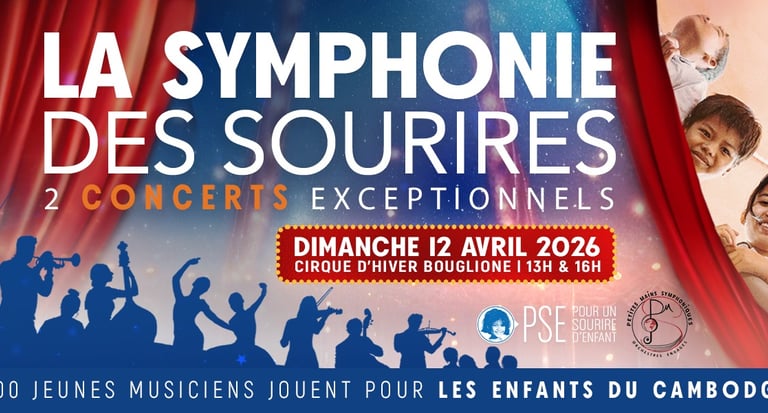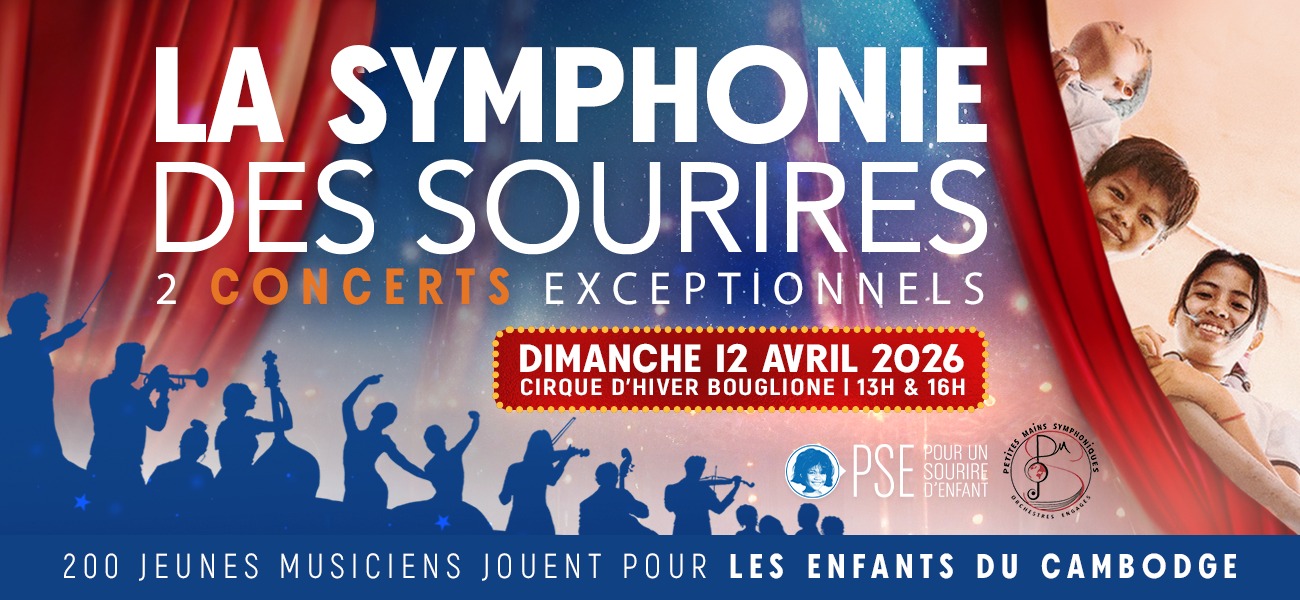Le samedi 12 avril prochain à 13h et 16h, deux concerts symphoniques seront organisés au Cirque d'Hiver Bouglione pour célébrer respectivement les 20 ans de l’association Petites Mains Symphoniques (PMS) et les 30 ans de l’ONG Pour un Sourire d’Enfant (PSE).