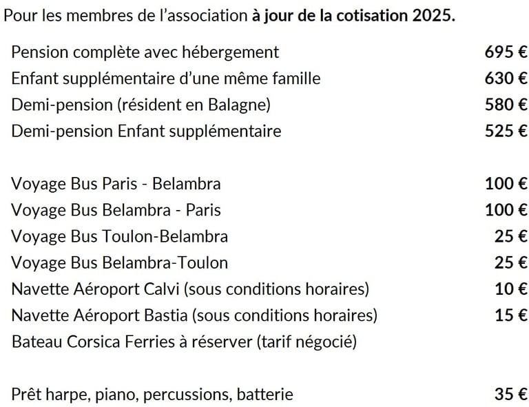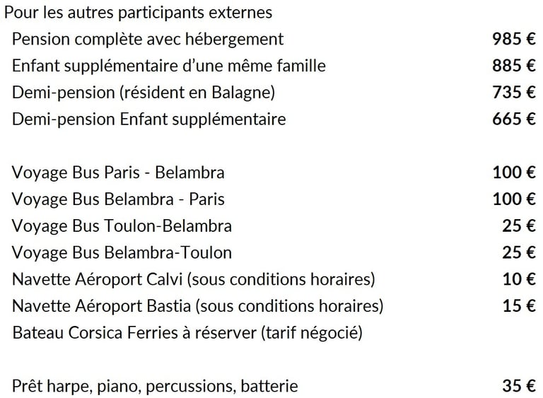 Tarif selon votre situation au regard de l’association Petites Mains Symphoniques. Tarifs hors transport.