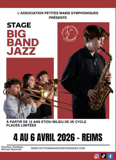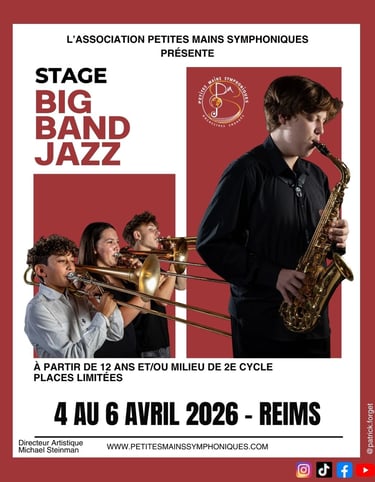 Les Petites Mains Symphoniques ont le plaisir de vous convier à un stage de jazz exceptionnel, du samedi 4 au lundi 6 avril 2026, dans la magnifique ville de Reims.