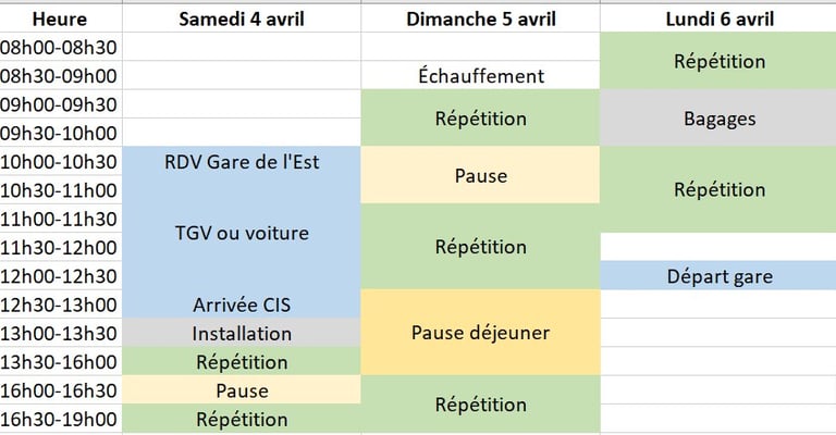 Lundi 6 avril 2026 départ vers 12h.