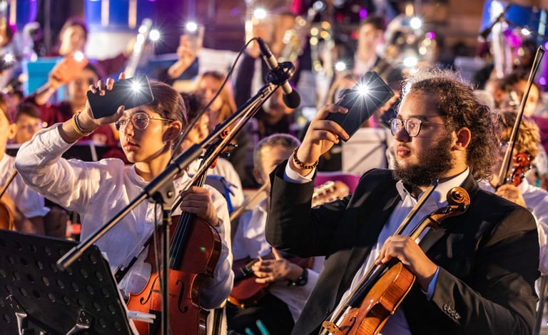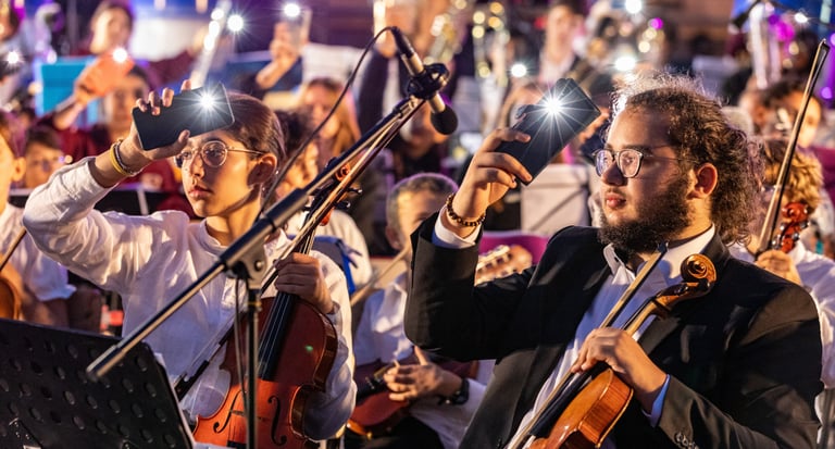 Parce que l’art est essentiel à l’épanouissement de notre jeunesse, l’ambition de l’Association Petites Mains Symphoniques, est de mettre à la portée de tous, sans discrimination sociale, l’Orchestre, un outil exemplaire, pour apprendre à vivre en harmonie, à dialoguer, à co-exister et à se surpasser par la joie du travail en commun.
