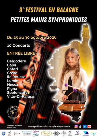 Du 18 au 23 octobre 2026, les Petites Mains Symphoniques investissent la Balagne, pour des rencontres et des échanges entre les artistes du festival, les bénévoles et l’ensemble des habitants du territoire.